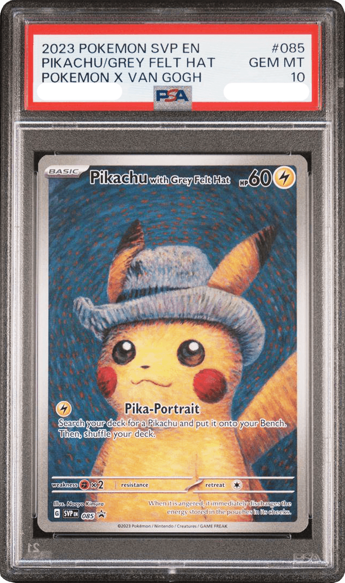 The Fund’s portfolio is anchored around a leading Pokémon card: the PSA 10 "Pikachu with Grey Felt Hat" card. Created through an official cross‑disciplinary collaboration between The Pokémon Company and the Van Gogh Museum in Amsterdam, the card draws inspiration from Van Gogh's iconic "Self‑Portrait with Grey Felt Hat." It represents a rare convergence of the world's highest-grossing entertainment franchise and a globally renowned fine art institution.